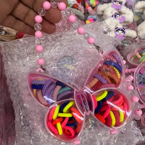 Toptan Kız Çocuk Kalpli ve Kelebek Kutu Renkli Saç Tokası ve Lastik Seti
