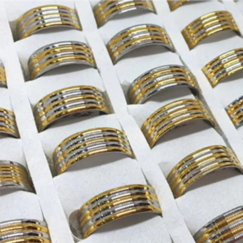İthal Çizgili Çelik Yüzük - Toptan 316L Paslanmaz Erkek Yüzük Modeli