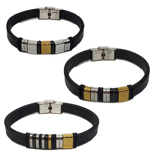 Toptan Çelik Detaylı Deri Erkek Bileklik