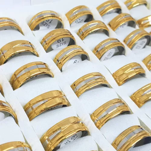 Toptan Silver Tektaş Çelik Yüzük - 8 mm Unisex Model (Gold Renk Seçenekli)