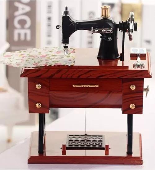Dikiş makinesi şeklinde müzik kutusu, nostaljik tasarımıyla dikkat çeken, mekanik çalışma sistemi sayesinde pilsiz çalışan dekoratif bir hediyelik eşyadır. Vintage tasarımlı bu ürün, hem şık bir dekoratif obje hem de işlevsel bir müzik kutusu olarak kullanılabilir.