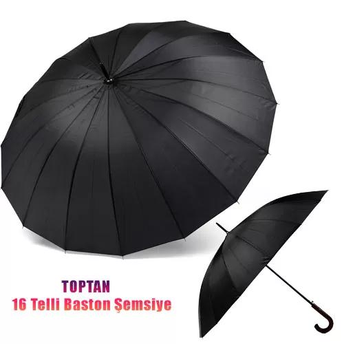 Toptan 16 Telli Baston Siyah Şemsiye