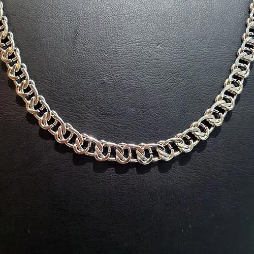 Özgün örgü formuyla dikkat çeken bu 7mm çelik zincir kolye, parlak gümüş görünümüyle klasik tarzla modern şıklığı birleştiriyor. Paslanmaz çelikten üretilmiş olup kararma yapmaz ve uzun süreli kullanım için uygundur.