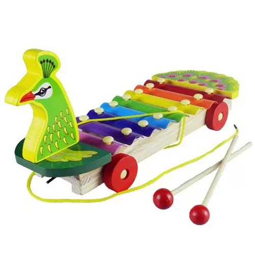 1 adet ahşap tekerli figürlü selefon(ksilofon) 8 nota müzik aleti.
