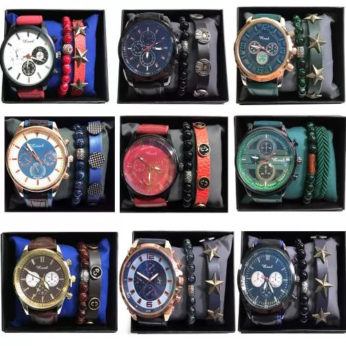 Toptan 5 Li Erkek Saat Tesbih Çakmak Kombin Setler