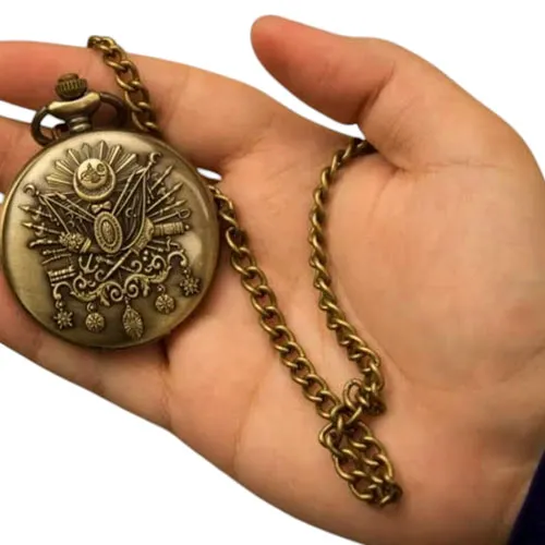 Toptan Osmanlı Motifli Köstekli Saat | Antik Bronz Tuğralı Model