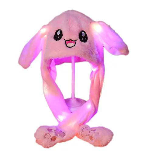 Toptan Çocuk ve Yetişkin için Sevimli Hareketli Tavşan Kulaklık 3 Mod Led Işıklı Peluş Bere
