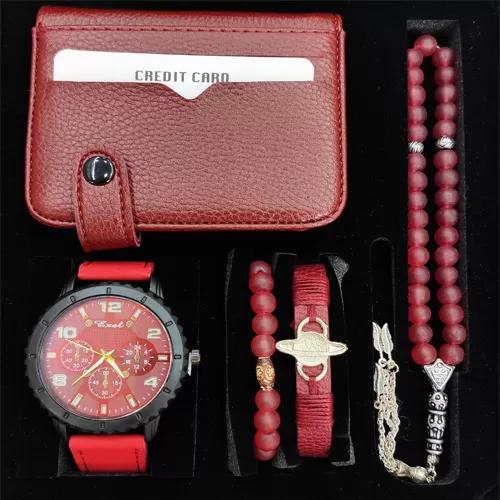 Erkek stiline zarif bir dokunuş katan bu özel set, kaliteli malzemelerle üretilmiş bir adet analog kol saati, bir adet cüzdan, bir adet tesbih ve iki adet bileklikten oluşmaktadır. Hem günlük kullanım hem de özel günler için ideal bir hediye seçeneğidir.