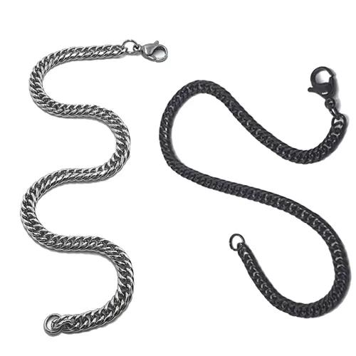 Toptan bijuteri, 316L paslanmaz ince yassı siyah ve gümüş çelik zincir bileklikler, en iyi paslanmaz çelikten imal edilmiş olup ithal üründür.
