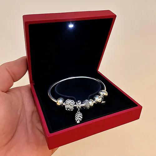 Şık tasarımı ve aydınlatmalı yapısıyla öne çıkan ithal ışıklı bileklik kutusu, özellikle gösterişli bileklik ve charm takıları sunmak için özel olarak üretilmiştir. Kırmızı dış yüzeyi kadifemsi dokuya sahip olup, kutu açıldığında iç LED ışık takıyı doğrudan aydınlatarak ürünü ön plana çıkarır.
