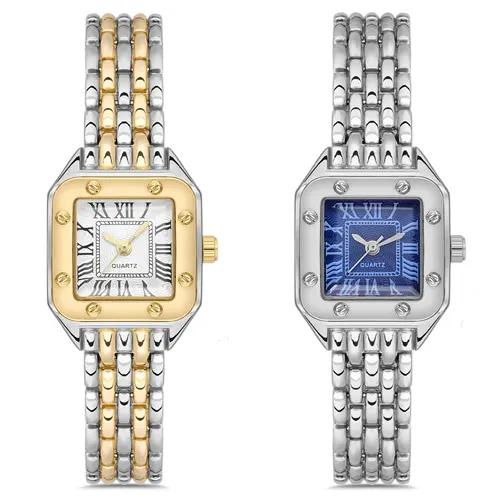 Toptan Unisex Retro Kare Kasa Metal Saat - Roma Rakamlı Premium Tasarım
