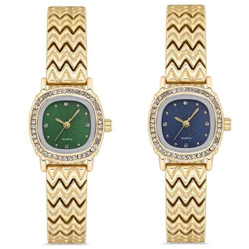 Toptan Taşlı Zarif Bileklik Bayan Saat - Dalga Desenli Kayış, Altın ve Gümüş Seçenekleri