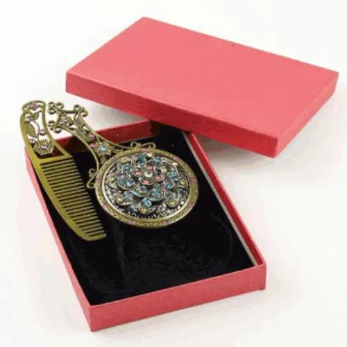 1 Adet Taşlı Makyaj Ayna ve Tarak Seti.